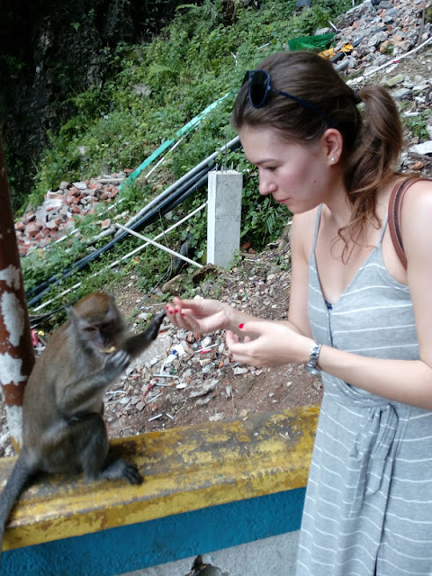 On our second stop in KL while doing the return sector we visited Batu caves. Magnificent statue of Murugan is rising just at the entrance to this one of the most popular hindu shrines outside India. On the way up climbing the stairs you see numerous macaques which I heard can be dangerous, cause they can bite you or steal some things from you. Didn’t discouraged us to take selfies with them though. Haha.